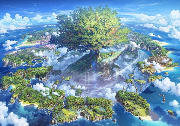Etrian Odyssey Nexus is situated at the island of Lemuria. The landmass is fragmented into different isles, all surrounding the Yggdrasil located in the center.