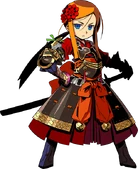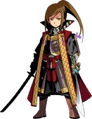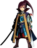 The Shogun is a support and offensive class introduced in Etrian Odyssey III: The Drowned City, where they are unlocked by siding with Armoroad. Well-versed in the art of battle, Shogun take tactical command over their fellow warriors and depend on their support. They also participate with a pair of Katanas, or any other weapon they've trained with. They prioritize inflicting death before their own safety, as evidenced by their weaponry that consumes an armor slot and their restriction to Clothing armor. They originally also have low defensive stats and outstanding offensive stats. Shogun perform best alongside fighters with better armor than their own, but notwithstanding their fragility Shogun are adept at recovering from their own deaths.